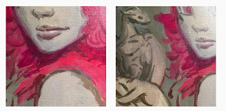 I'm not used to painting on canvas, as many of you know, my choice is Bristol Vellum (paper), so I am making the adjustment to traditional canvas. Currently I am working on a 12" x 24" panel canvas and having loads of fun with that.